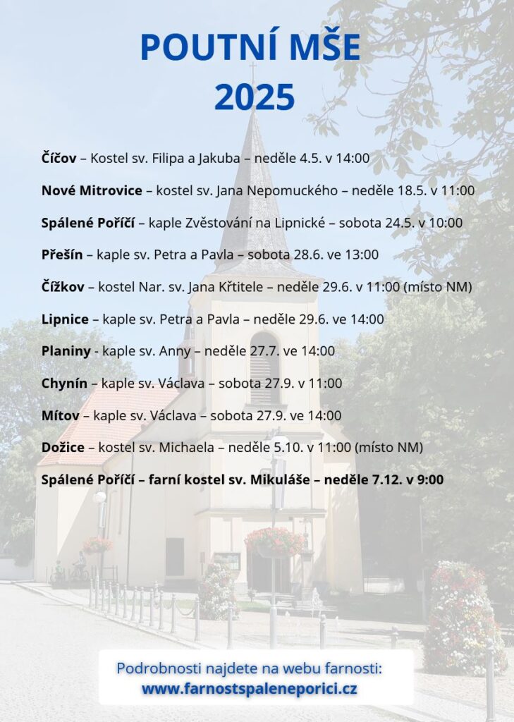 Neděle v 9:00 (Spálené Poříčí) + 11:00 (Nové Mitrovice)
